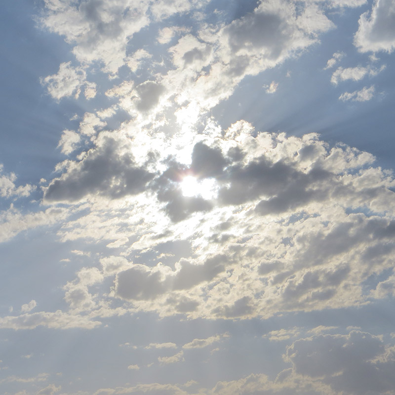 خورشید پشت ابرهای پارهپاره پنهان شده و نورش از لابهلای آنها در آسمان روستا پخش شده است.